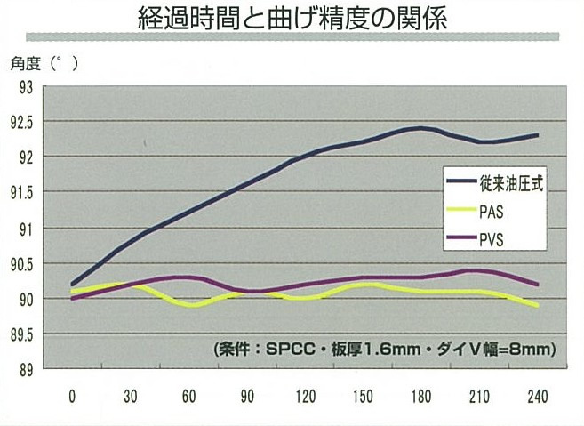 通过自动补正功能,消除材料波动和长宽方向的角度偏差,可以稳定地折弯加工到所需的角度。
