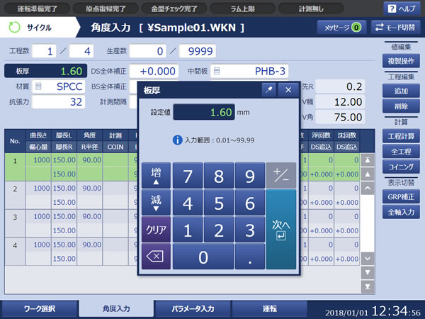同步模式:可以在现场编制和修改折弯数据,也可以边确认3D模拟程序边折弯作业。