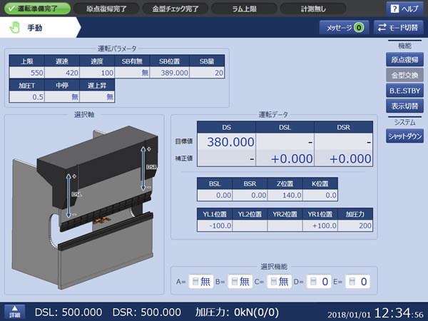 | 控制轴数 | DS:2轴,BS:2轴,Z:2轴, Y:2轴(YL,YR),k:1轴 | DS:2轴,BS:2轴,Z:2轴, Y:2轴,k:1轴,BE:2轴 | DS:2轴,BS:2轴,Z:2轴, Y:2轴(4轴,OP),k:1轴,(BE:2轴,OP) | |