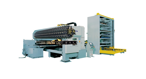 24小时无人运转概念的连发式冲压中心备有丰富的薄板供应和产品集成系统。从依样堆集薄板的标准系统到以产品总成为单位的分类系统,都有提供。